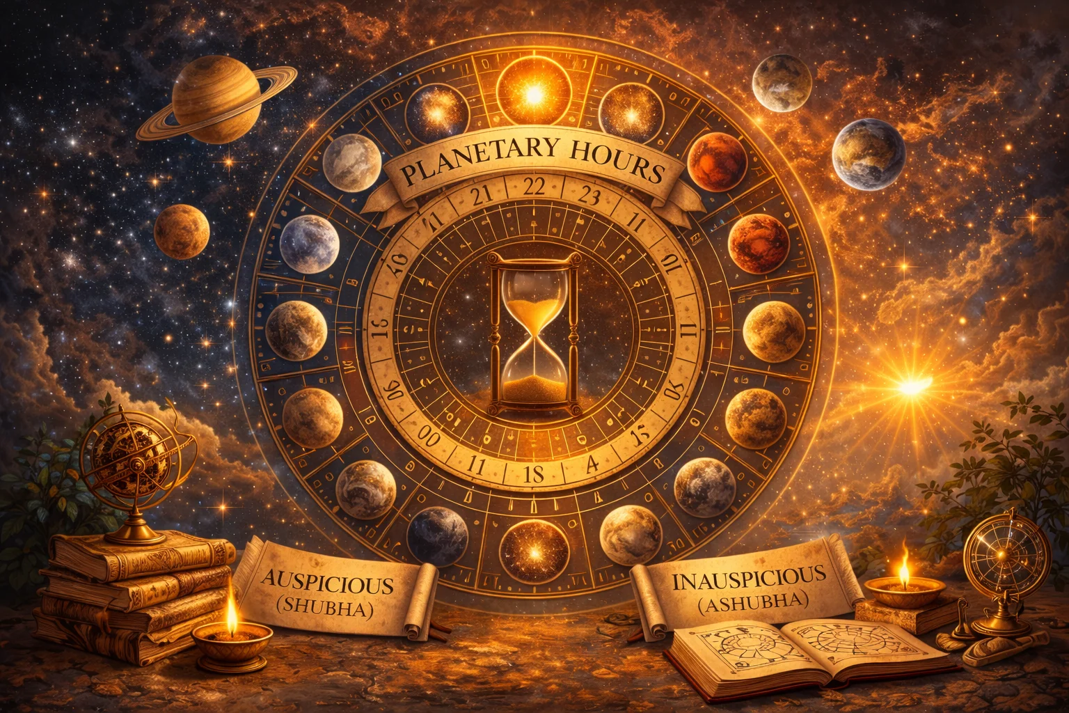 Moon, Mars, Mercury, Jupiter, Venus, Saturn) in a specific sequence. These planetary hours help